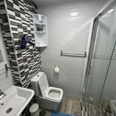 Apartamento nº1: 60m2 en una primera planta totalmente reformado y equipado con 2 habitaciones, cocina abierta al salón, 1 baño y un pequeño lavadero exterior.