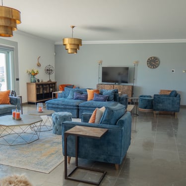 Al entrar nos recibe un elegante hall con una gran lámpara colgante que desciende desde el techo de la planta superior. En la planta principal, encontramos un amplio salón comedor con chimenea que goza de gran luminosidad gracias a sus grandes ventanales y su terraza con vistas panorámicas al mar. La espaciosa cocina, equipada con isla, es ideal para disfrutar de la gastronomía y cuenta con acceso directo a la lavandería, al patio y despensa. También encontramos 3 dormitorios con baños en suite y terrazas privadas y un despacho con baño.